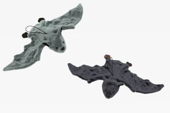Pluszowy nietoperz z rozpiętością skrzydeł 36 cm z nitką do zawieszenia dwa kolory minimalny zakup 24 szt.