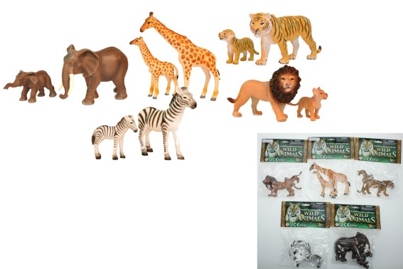 10 zwierząt PCW 5,5 – 13 cm (słoń, żyrafa, tygrys, zebra, lew)